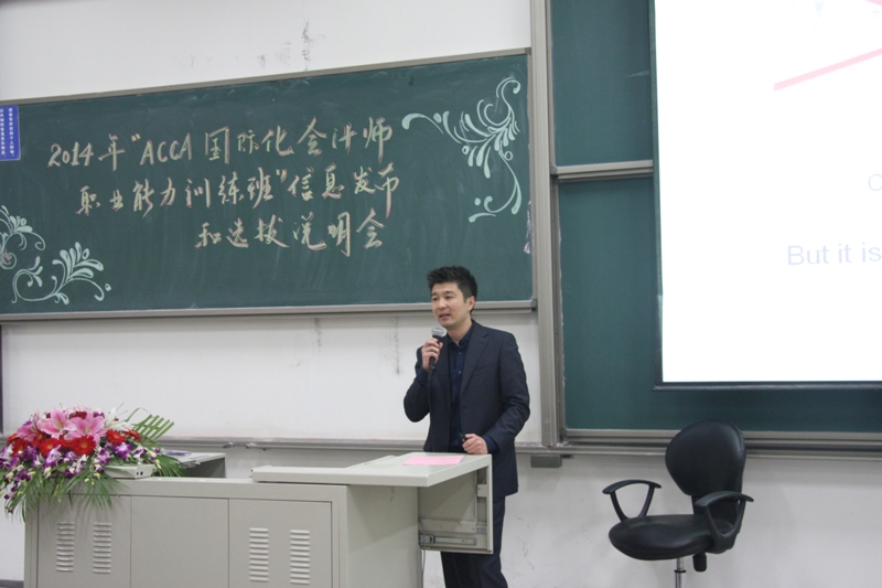 10月22日下午,由新葡萄8883官网AMG官网承办的我校2014年“ACCA国际化会计师职业能力训练班”信息发布和选拔说明会在沙河校区主教215室顺利召开。新葡萄8883官网AMG官网院长孟焰教授,新葡萄8883官网AMG官网副院长武羿副教授,ACCA北京代表处品牌经理郭涛先生,ACCA教育中心孙伟、方麟海, ACCA教育中心、ACCA会员李亚婷等出席会议。新葡萄8883官网AMG官网大一、大二学生和其他学院部分学生也参加了会议。本次会议由新葡萄8883官网AMG官网副院长武羿副教授主持。